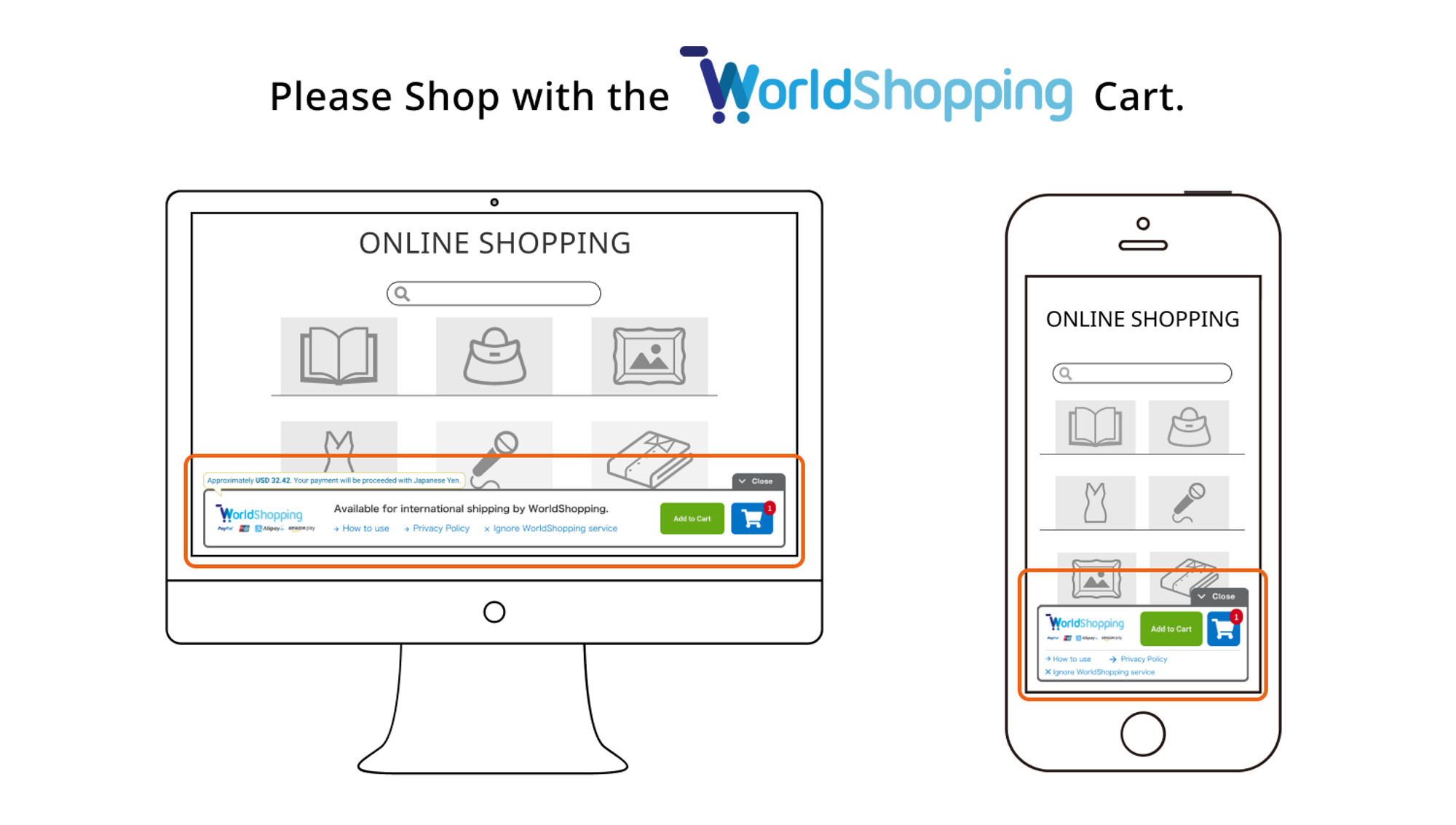 1. When you access the website from overseas, the “WorldShopping Cart” will be displayed automatically.